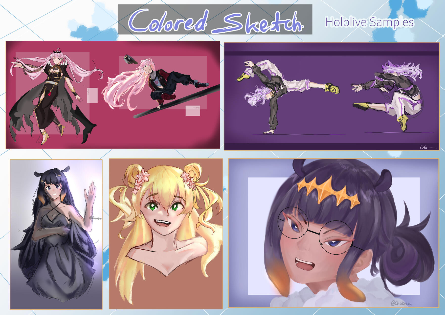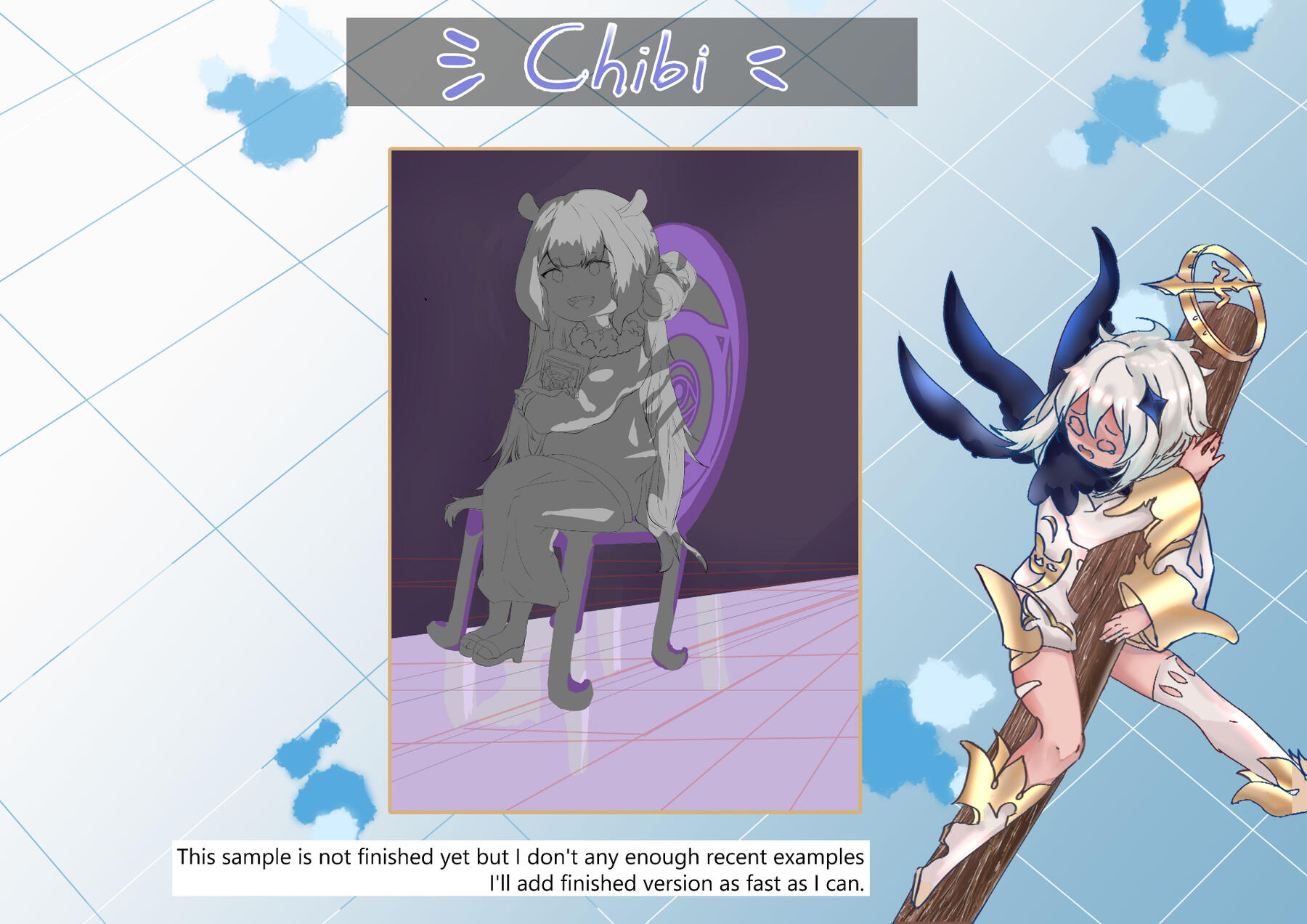11. Several WIP will be sent to you. Minor character colors changes can be requested without any fees.